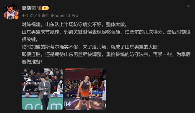 4月1日, 山东广播电视台体育频道体育新闻主编徐凯华在个人社媒账号上这么写道。