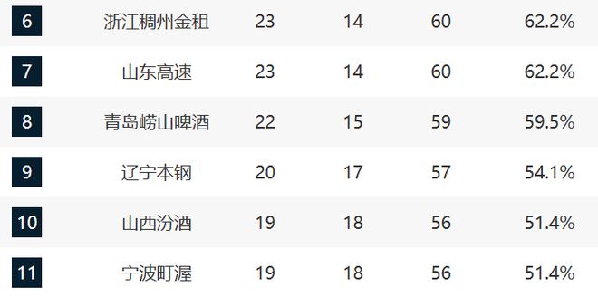至于浙江已经反超山东了,他们现在已经七连胜了,山东则遭遇两连败,现在他们攻守的状态已经越来越差了,感觉都不知道怎么打球了。青岛则保持在他们两支球队的后面,这轮取胜之后,他们还是有可能反超山东的。