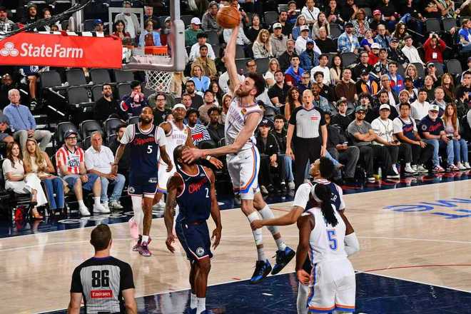雷霆:霍姆格伦30分14板5助2断4帽、乔21分2板2助、亚历山大20分1板11助、杰伦·威廉姆斯18分6板6助2断、哈尔滕施泰因10分7板。快船:莱昂纳德20分8板3助、桑德斯17分2板1助2断、大洛佩兹16分6板3助、米勒16分3板6助、科林斯12分9板3助3断、琼斯11分5板。
