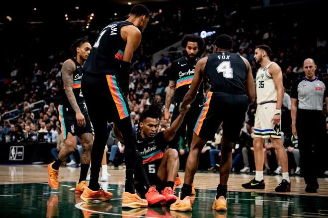 一个是福克斯,马刺的核心球员当中,只有福克斯一人有过季后赛经验,缺点是也不多,只打过一轮,2023年抢七输给勇士。但那轮福克斯的表现非常出色,场均能拿到27.4分5.4篮板7.7助攻。