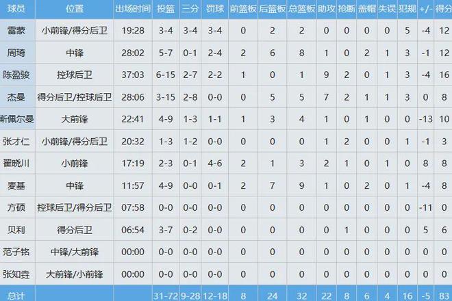北京队数据如下: