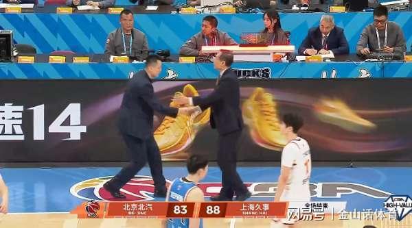 83比88,当比赛曲终哨响,北京主帅许利民,无奈瞥了一眼电子记分牌,遂走向中场,与迎面走来的上海主帅卢伟握手致意。赢球后卢伟,弯躬着身子,彰显出晚辈的谦卑和礼节……