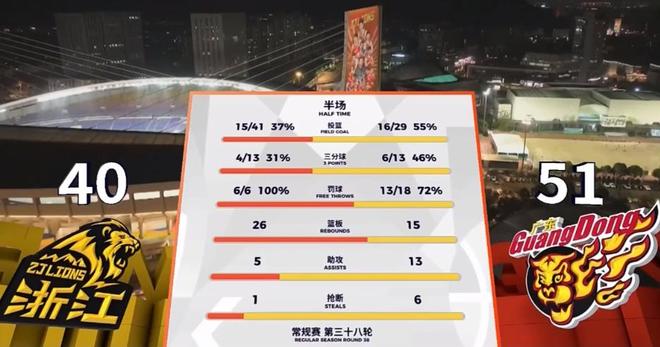 广厦上半场的问题有3个,一个是三分不准,二个是多次前场篮板无法转化为得分;再一个是无法突破广东的大延误防守站位,几乎打不出有效的一五挡拆配合,球给不到大秋,后卫还容易失误,半场广厦仅5次助攻,广东13次。