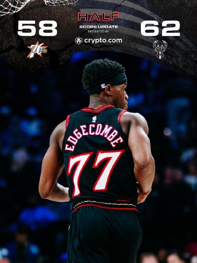 次节比赛,76人连续两节单节不足30分,雄鹿第二节单节狂轰36分,76人单节29-36输掉7分,上半场结束76人58-62落后雄鹿4分。