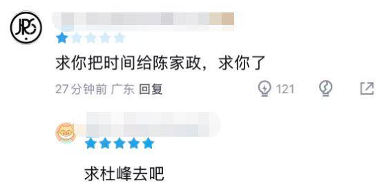 而在后卫线上,杜锋放着更具潜力的陈家政不用,一而再再而三信赖胡明轩,也引起了广东自家球迷的不满,直言:把你的出场时间让给陈家政。