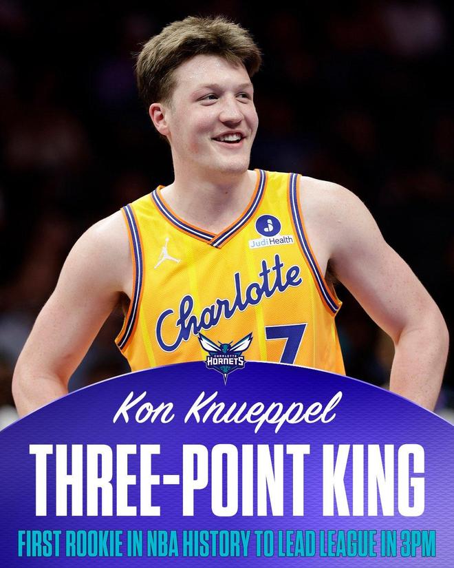 凭借这样的表现,克努佩尔成为NBA成立至今80年漫长历史中,首位在新秀赛季就拿下三分王的球员。