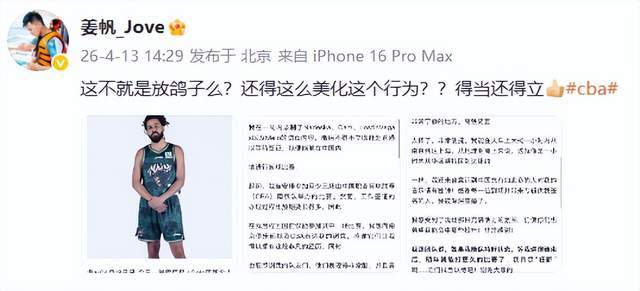 然而,争议随之而来。知名篮球解说员姜帆直言:“这不就是放鸽子么?还得这么美化这个行为??得当还得立。”批评直指核心:当体育赛事沦为流量秀场,竞技精神是否被稀释?当球员的出场时间被赋予象征意义而非战术价值,球迷的忠诚是否正在被消费主义重构?