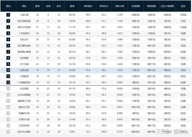 CBA积分榜