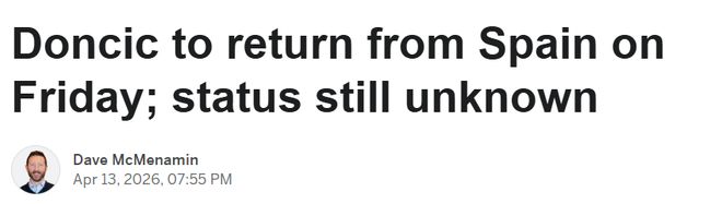 北京时间4月14日,据名记Shams报道,东契奇在西班牙接受了针对左腿筋二级拉伤的多次注射治疗,经过一周休养后,将于本周六(北京时间,下同)返回洛杉矶。他或许无法出战本周末开打的NBA季后赛首轮,但他仍会随队出征。