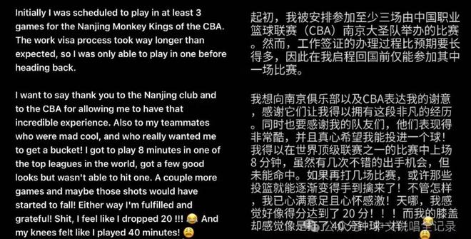 他也在社媒上发了长文回顾这次加盟