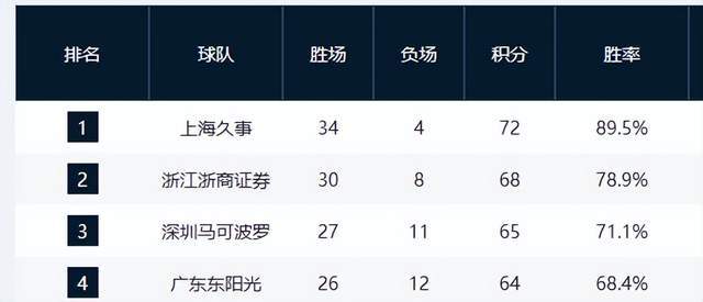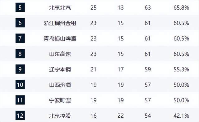 辽宁队在客场击败山东后,战绩来到21胜17负,提前4轮锁定季后赛资格,成为本赛季首支晋级球队,展现卫冕冠军的稳定实力。山西队与宁波队同为19胜19负,分列第十、十一,季后赛边缘竞争激烈。