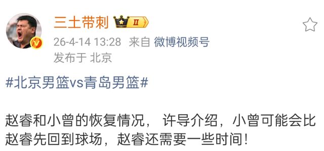 赵睿最近两个赛季伤病很多,本赛季他已经休息了两次,这次他也是遭遇新的腿部拉伤的情况。之前北京首钢方面给出的消息是赵睿需要休息两周,但许利民表示赵睿的情况要比预期要长一些,还需要一些时间。