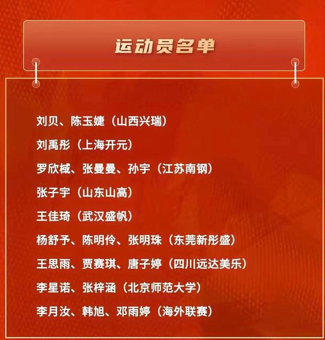 还有邓雨婷这样首次入选的海外小将,以及李星诺、张梓涵两名大学生球员。