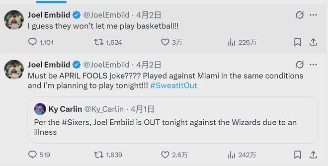 前NBA球员钱宁-弗莱说:“恩比德每年都是这样,他就是很容易受伤。恩比德就像一辆汽车,你得把电线搭在一起来点火启动。一旦发动起来,这车也许能跑得很快,感觉棒极了,可是只能跑一会儿。是的,76人本赛季已经结束了。”