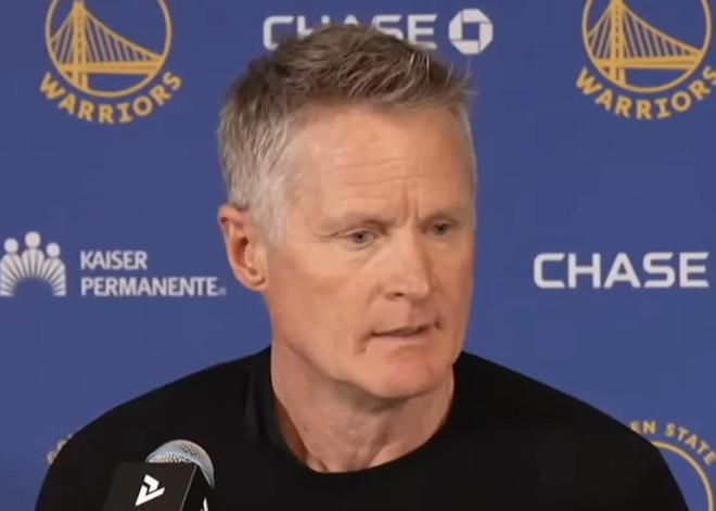 北京时间4月14日,在NBA附加赛勇士对阵快船赛前,主帅科尔接受了媒体的采访。
