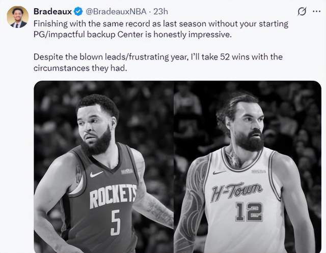 在37岁的年纪还能保持这样的进攻效率,本就是一件难事;更关键的是,在整个赛季起伏波动下,没有稳定的首发控卫和替补中锋,但火箭依然强势拿到了追平上赛季的52胜。