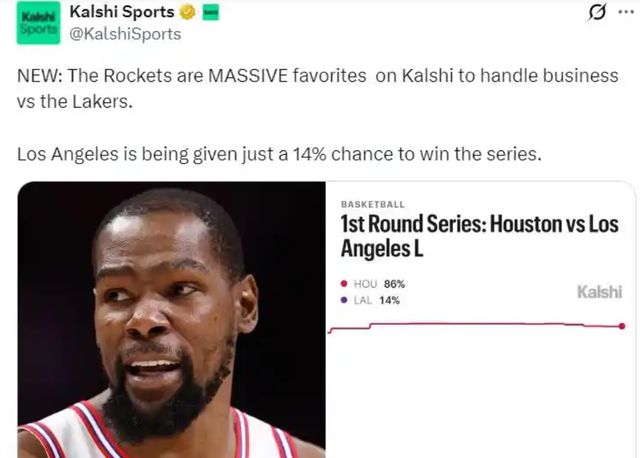 而基于伤情影响,媒体模型机构Kalshi Sports也对这轮系列赛给出了相当残酷的预测结果: