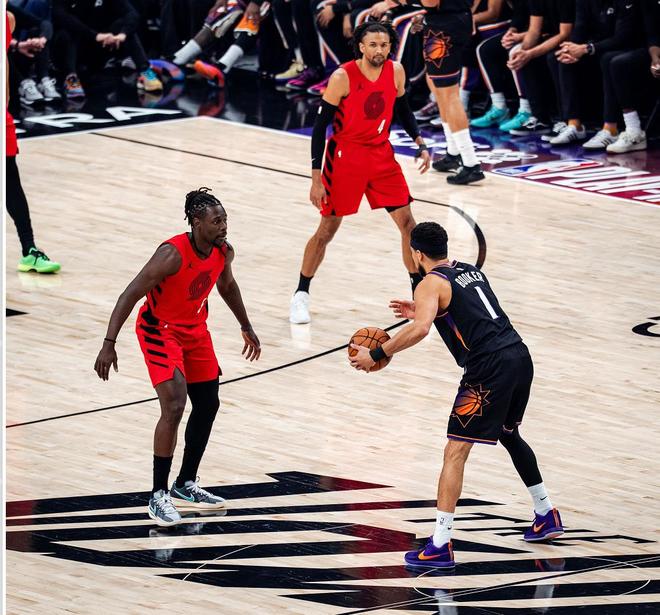 4月15日NBA西部附加赛揭幕战来了,常规赛排名西部第七的菲尼克斯太阳队主场迎战波特兰开拓者队,这两支球队本赛季都打出了超预期表现,赛季初期都认为他们是西部鱼腩球队。从常规赛来看,双方本赛季总计交手3次太阳赢下了其中2次。此役由于是附加赛上半区比赛,双方有两条命机会哪怕输了还有下一场机会,不过对于双方来说谁也不想首轮就打雷霆,因此某种意义上来说这也是双方的生死战。伤病方面开拓者这边只有利拉德不打,此前缺阵7场的格兰特复出,杨瀚森也在大名单中,太阳这边阿伦腿筋拉伤不打其他球员全部能上。太阳这边有足够的防守资源去限制阿夫迪亚的发挥,本场比赛大概率是狄龙直接领防,开拓者能否打出擅长的防守反击节奏至关重要。于太阳而言需要布克、杰伦格林、狄龙稳定进攻输出,要知道最后20场开拓者的防守效率高居联盟前5!
