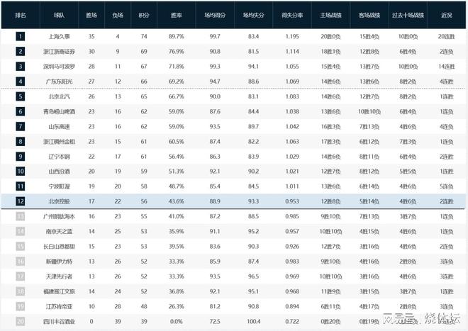 CBA积分榜