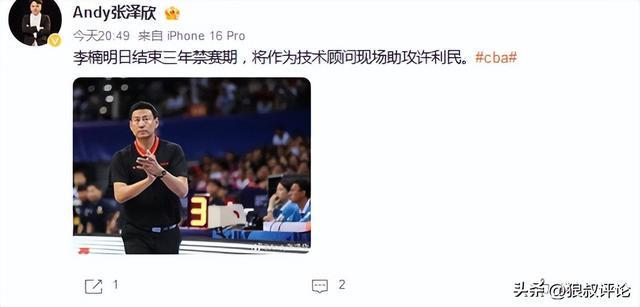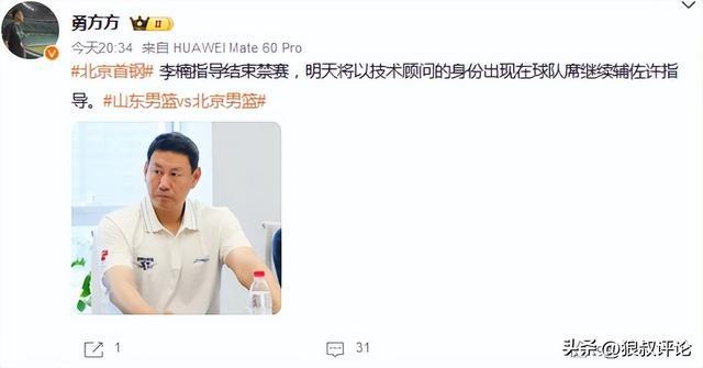 根据国内媒体的报道,前中国男篮主帅李楠,将于4月17日解禁复出,以技术顾问的身份出现在球队席继续辅佐许利民。