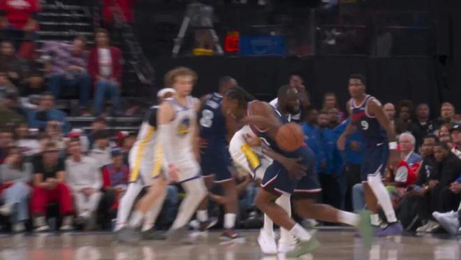 这场比赛,快船几乎领先了一整场,结果最后半节翻船——从剩下6分钟前108-101领先,到最终121-126憾负,快船这期间被勇士打了一波25-13,这还是包括了小琼斯最后的铁血压哨扣篮。