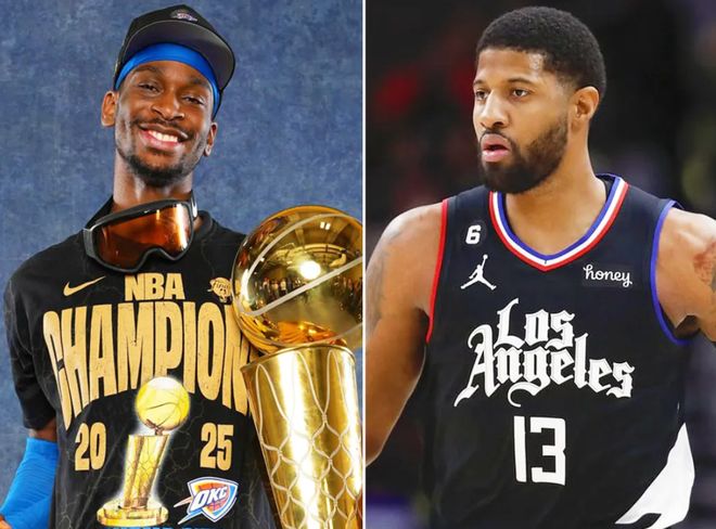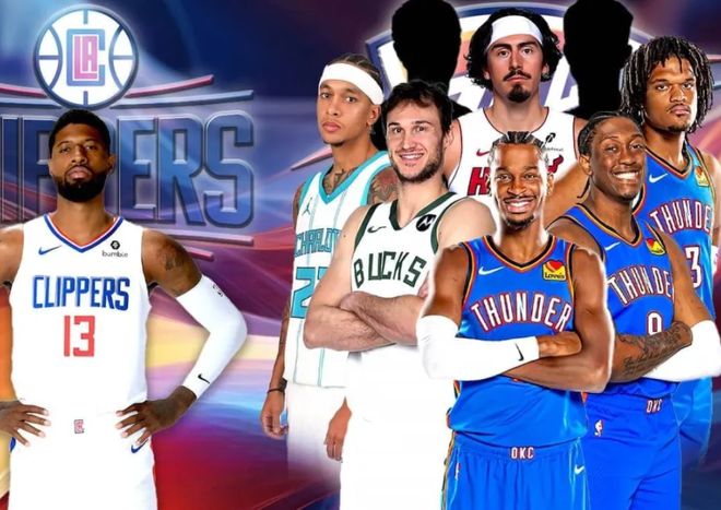 原来在2019年雷霆队跟快船队做了一笔9换1的大交易,当时快船队送出了亚历山大、加里纳利、4个无保护的首轮签、1个乐透保护首轮签和2个首轮签互换权,从雷霆队换来了保罗-乔治。