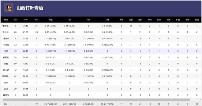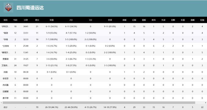 全场比赛山西队的群狼战术非常明显,全队11人出场,只有奥斯丁一人出场32分钟,其余队员出场时间均在30分钟之内。而四川队仅有7人出场,四人出场时间超过30分钟。