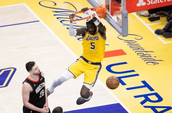 比赛从首节就定调。肯纳德手感烫到冒烟,两记三分+中投独揽11分,湖人开局8-0打懵火箭。次节“菜鸡互啄”时段,艾顿内线19分11篮板硬刚申京(19中6仅19分),八村塁10中6高效砍14分,斯玛特追着谢泼德防出2帽8助,湖人角色球员全员敢打敢拼!