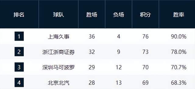 广厦以117:104加时战胜北控,战绩提升至37胜4负,领先深圳三个胜场,彻底锁定联盟第二,季后赛将避开上海,坐拥半区优势。深圳虽仍居第三,但仅领先北京一个胜场,末轮若失利,排名或将被反超。
