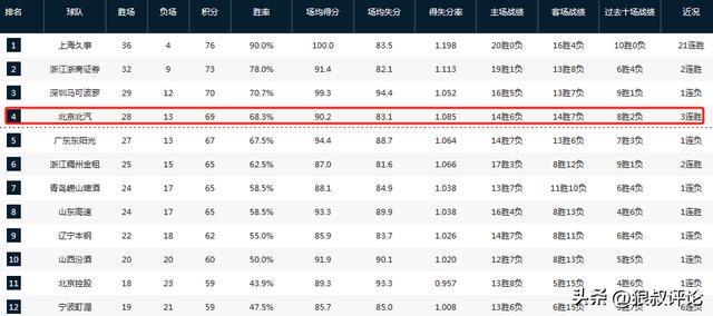 截止目前,北京男篮的战绩为28胜13负,排在积分榜第四,下一场将会对阵吉林男篮,赢球则是锁定积分榜前四。