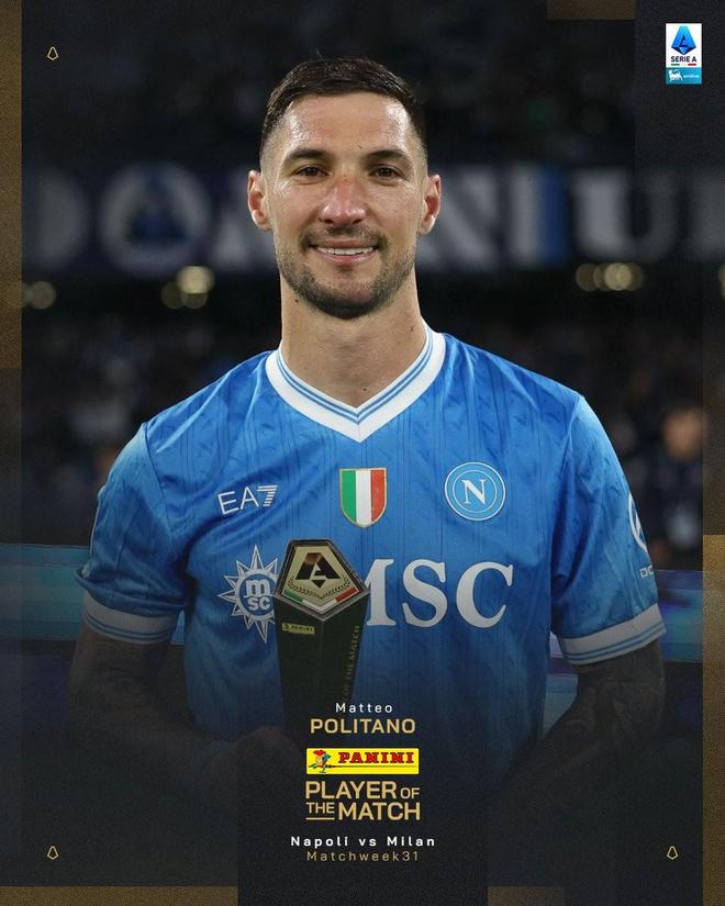 意甲第31轮,那不勒斯主场1-0击败米兰,此役打入全场唯一进球的波利塔诺当选意甲官方全场最佳球员。