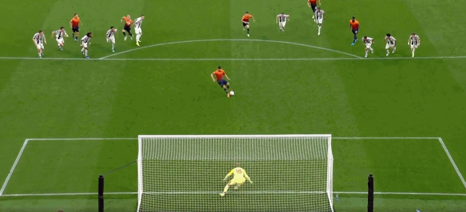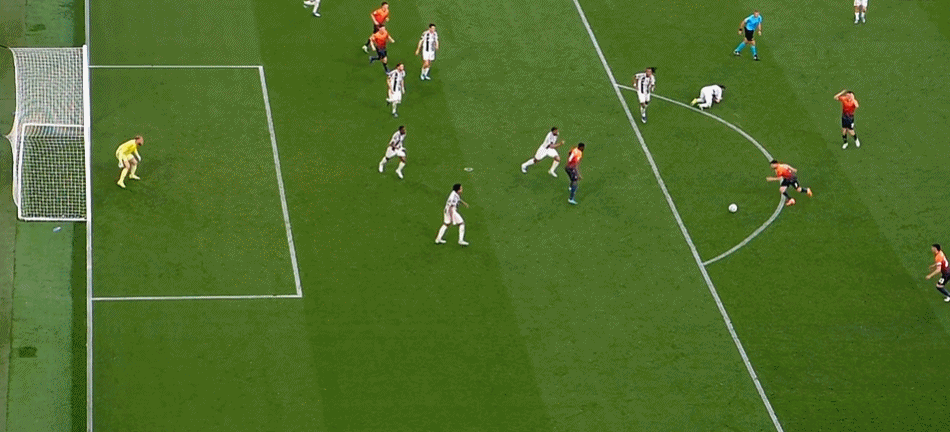 第33分钟,伊尔迪兹左路内切兜射,皮球被门将没收