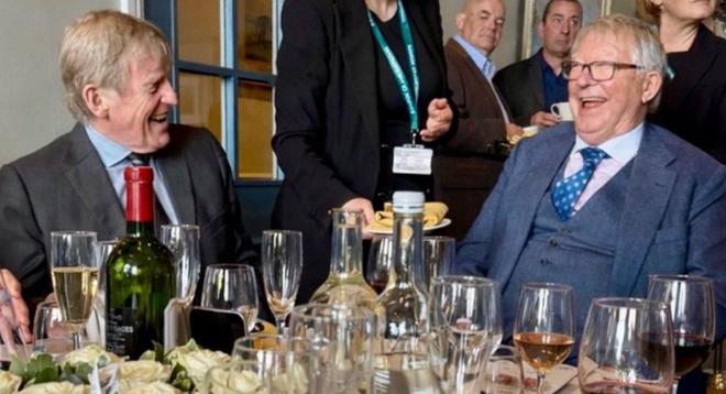 曼联传奇主帅弗格森爵士被拍到在安特里赛马场,而利物浦传奇人物达格利什日前在社交平台发布了一张照片,照片中弗格森与他同桌而坐,两人相谈甚欢,并透露这周他们二人赛马都没押中。