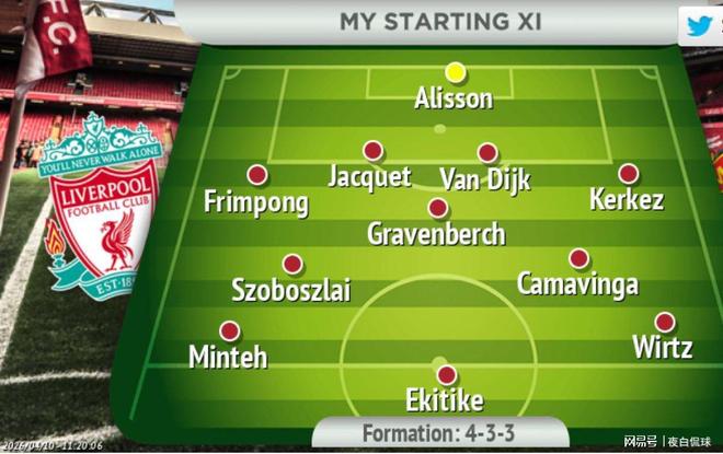 预测利物浦下赛季首发(4-2-3-1)