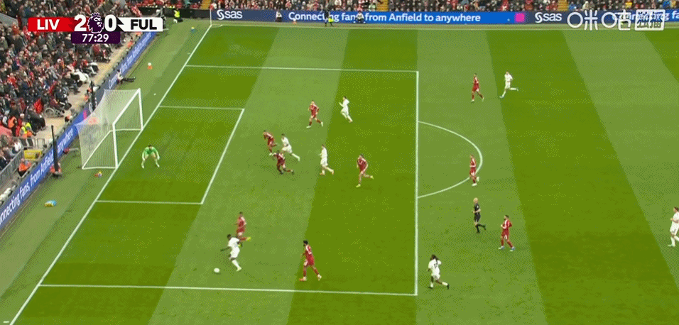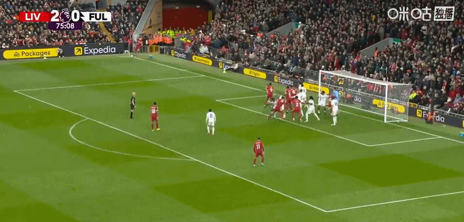 第76分钟,利物浦发出左侧角球被门将扑出,范戴克将球顶向门前被解围
