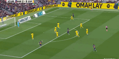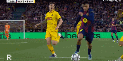 第48分钟,亚马尔禁区内闪转腾挪,随后打门被挡出底线