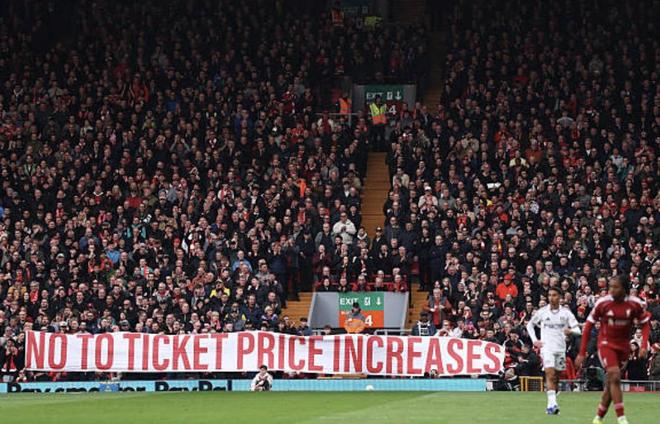 北京时间4月12日,英超第32轮,利物浦2-0富勒姆。此前,利物浦所有者芬威体育集团宣布,由于运营成本上升,将在未来三年逐步提高票价。关于票价上涨的首次抗议行动,已经在安菲尔德球场内外同时展开。