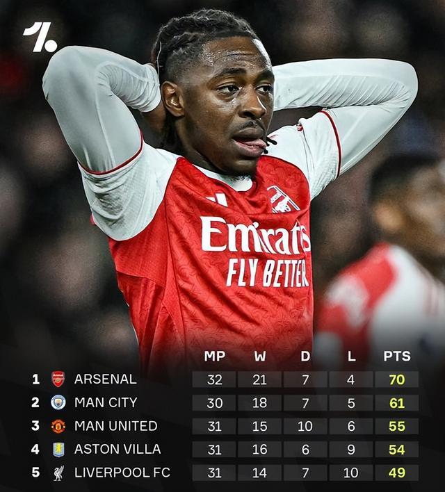 现如今,熟悉的剧情又在重演,尽管目前阿森纳多赛两场依旧领先第二名9分,看似还掌握着争冠主动权。