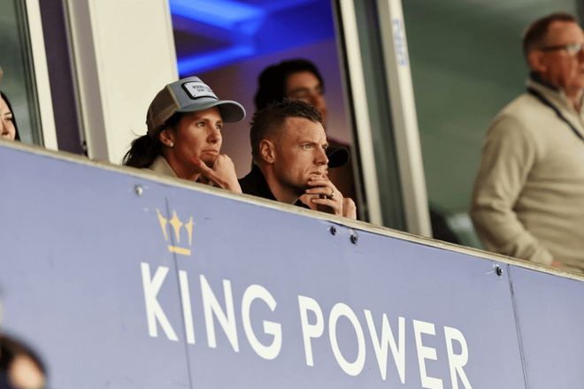 本场比赛,39岁的莱斯特城传奇杰米-瓦尔迪与妻子丽贝卡-瓦尔迪一同来到王权球场观战。