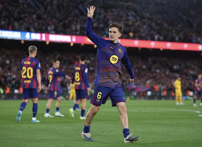 这一动作很明显是在致敬皮克当年的经典“五指山”手势,2010年巴萨5-0大胜皇马时,皮克曾做出“五指山”动作。加维甚至还示意巴萨球迷一起模仿这一手势,这一象征性动作在巴萨球迷群体中具有非常重要的意义。