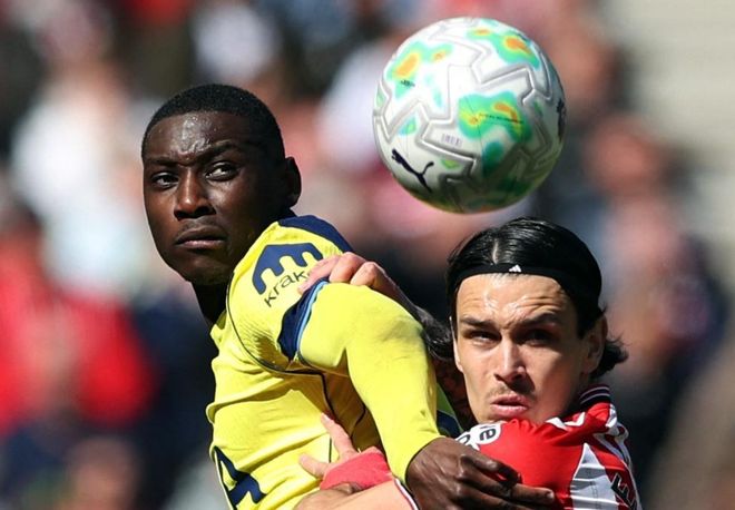 比赛刚刚开始不久,热刺就创造出机会。里沙利松在禁区左侧起脚推射,打近角。门将封死了角度,轻松把球没收。2分钟后,扎卡角球直接射门。门将注意力非常集中,把球托出横梁。第21分钟,穆阿尼禁区内倒地。裁判判罚点球,但看了回放之后,认定没有犯规,没有判罚点球。