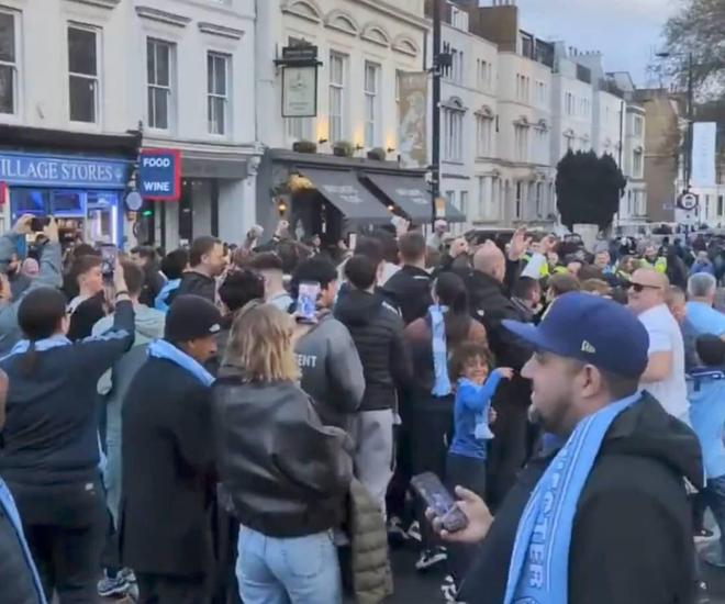 根据《太阳报》发布的视频,在战胜切尔西后,曼城球迷聚集在伦敦街头,肆意庆祝胜利。