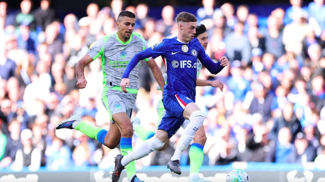 第5分钟,帕尔默突入禁区加速摆脱罗德里的防守,但射门击中边网。