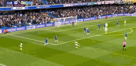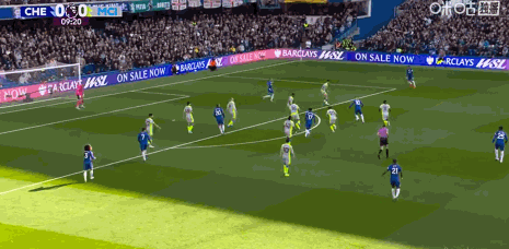第45+1分钟,切尔西定位球机会,安德雷-桑托斯头槌顶高