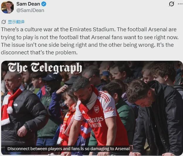比如电讯报阿森纳跟队记者SD的这篇文章,很长,我来不及翻译了,但里面提到的事情确实让人担忧,阿森纳现在踢得不是球迷想看的足球,国内其实也出现了这种情况,我甚至有一种感觉,别说本赛季丢冠,就算是夺冠,可能很多人都不满阿尔特塔……