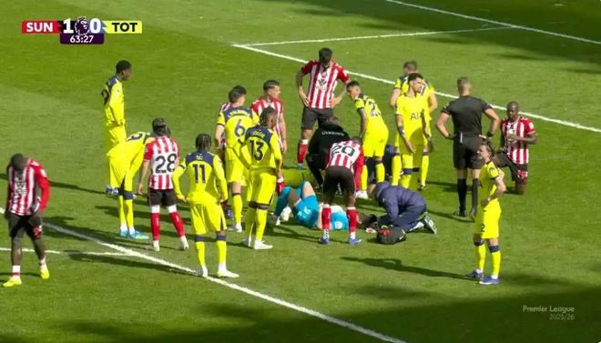 比赛第64分钟,罗梅罗与自家门将安东宁·金斯基发生了剧烈碰撞,两人都接受了热刺医疗团队的治疗。