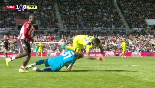 他在比赛的关键时刻离场,而就在不久之前,热刺刚刚因桑德兰后卫诺尔迪·穆基耶莱的一脚折射幸运进球而落后。