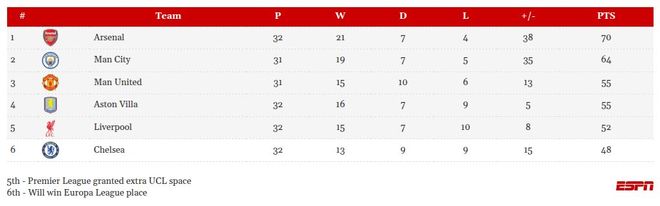 切尔西主场0-3脆败之后,曼城离榜首只剩6分,还少赛一场。瓜迪奥拉在斯坦福桥的更衣室里没庆祝太久,他的计算器已经按到了5月8日——那天的伊蒂哈德,阿森纳带着三冠王的美梦来踢"决赛"。