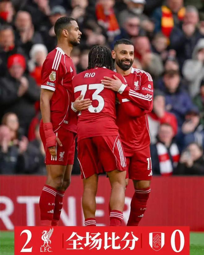 北京时间4月12日凌晨0点30分,利物浦主场迎战富勒姆。上半场比赛,利物浦攻势不断,恩古莫哈内切后兜射破门,随后萨拉赫在右路同样内切完成破门。下半场比赛,加克波停球不佳错失良机,史密斯·罗推射造险。最终,利物浦2比0击败富勒姆,终结各项赛事三连败。