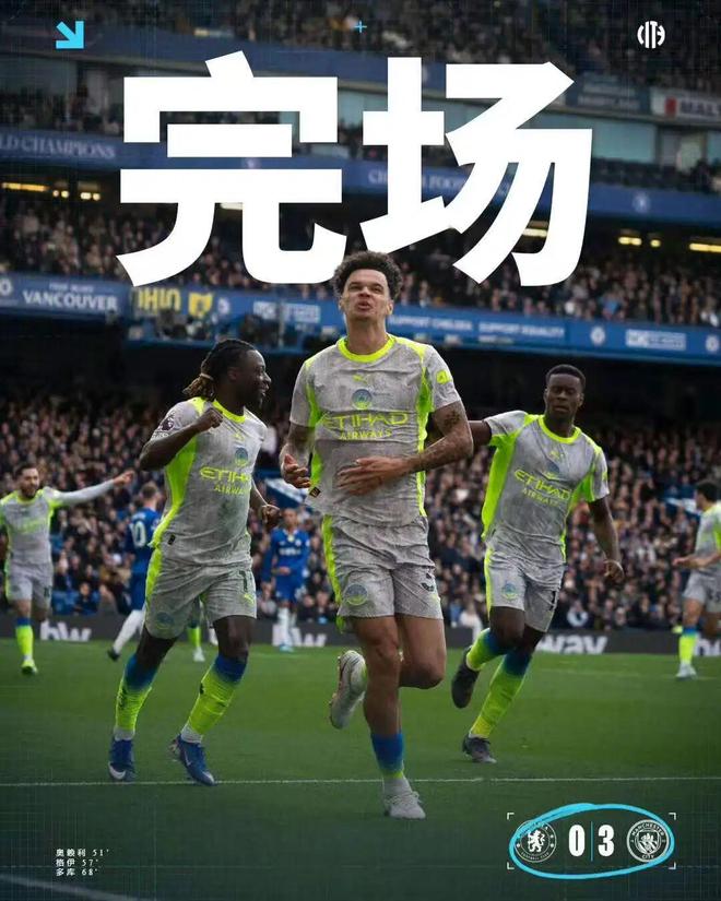 切尔西0比3曼城